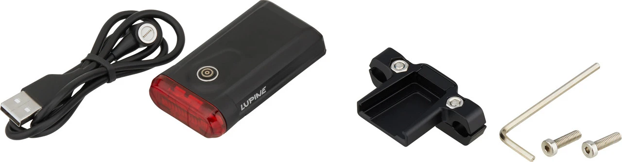 Lieferumfang:1 x Rücklicht Lupine C14 Mag1 x Magnethalterung Lupine Sattelstreben1 x USB-Ladekabel Lupine2 x Schraube Lupine