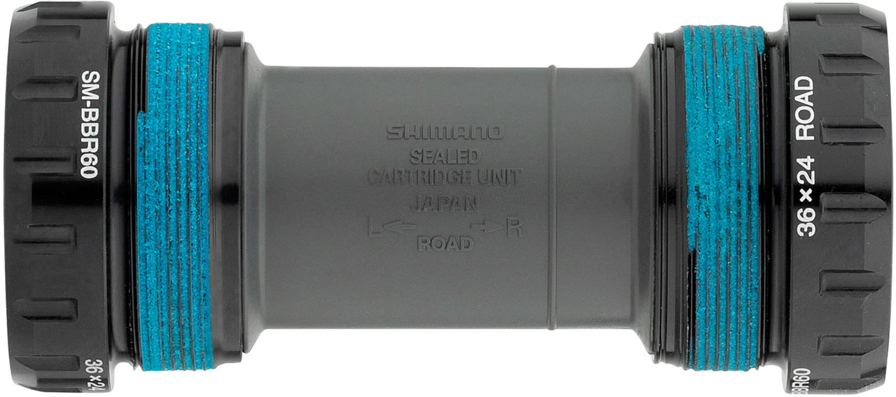 Das Shimano SM-BBR60 ist ein Innenlager vom Typ BSA oder ITA, welches für Ultegra, 105, GRX, FC-CX70 und andere Hollowtech II-kompatible Kurbeln mit 24 mm Achse empfohlen wird. Es überzeugt durch verbesserten Leichtlauf und geringes Gewicht, ist dabei aber genauso beständig wie sein Vorgänger. Tretlagergehäuse mit BSA-Gewinde sind 68 mm breit, ITA-Gehäuse sind 70 mm breit.