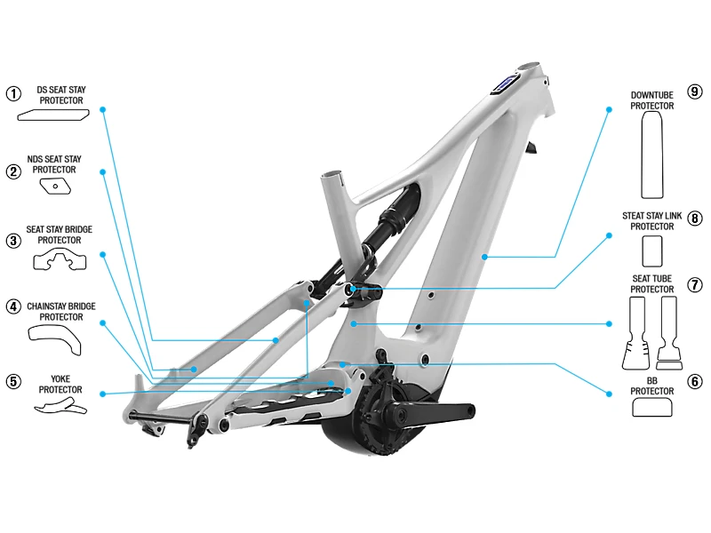 Ein umfassender Satz gestanzter Mylar-Schutzaufkleber für den Turbo Levo 2019-20