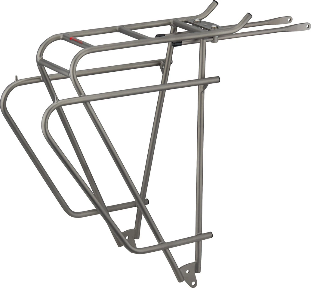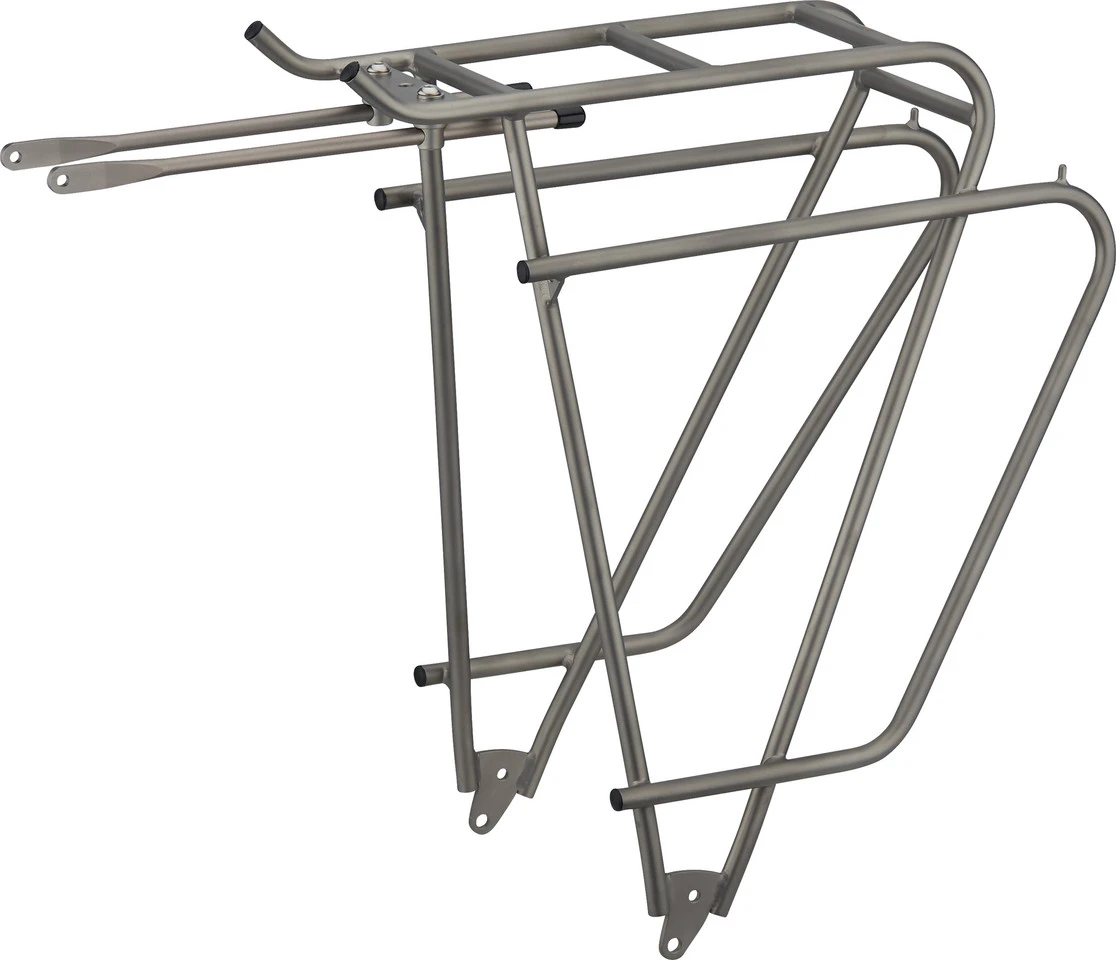 Spezifikationen:Einsatzbereich:City, Touring & TrekkingBefestigung oben:HinterbaustrebenbefestigungBefestigung unten:Strebenbefestigung am RahmenausfallendeLaufradgröße:26″ , 27,5″ , 28″Strebendicke:10 mmTechnische Daten:Material:TitanLochabstand Rücklicht:50 mm – 80 mmFreigaben:Zuladung (max.):26 kgReifenbreite (max.):60 mmKompatibilität:erlaubter Fußabstand innen 165 mm – 195 mmFeatures:Titan ist leicht und extrem stabil238 mm x 108 mm große Gepäckflächezweite untere Ladeebene für Gepäcktaschenpasst an viele Rahmen dank längenverstellbarer Strebenvariabel montierbare RücklichtschellenTaschenstopper gegen VerrutschenHerstellernummer:350000-001